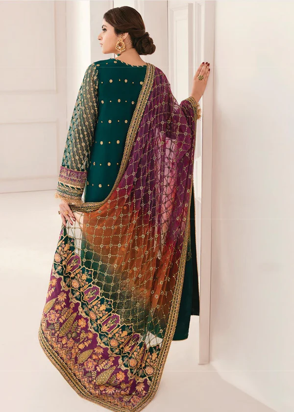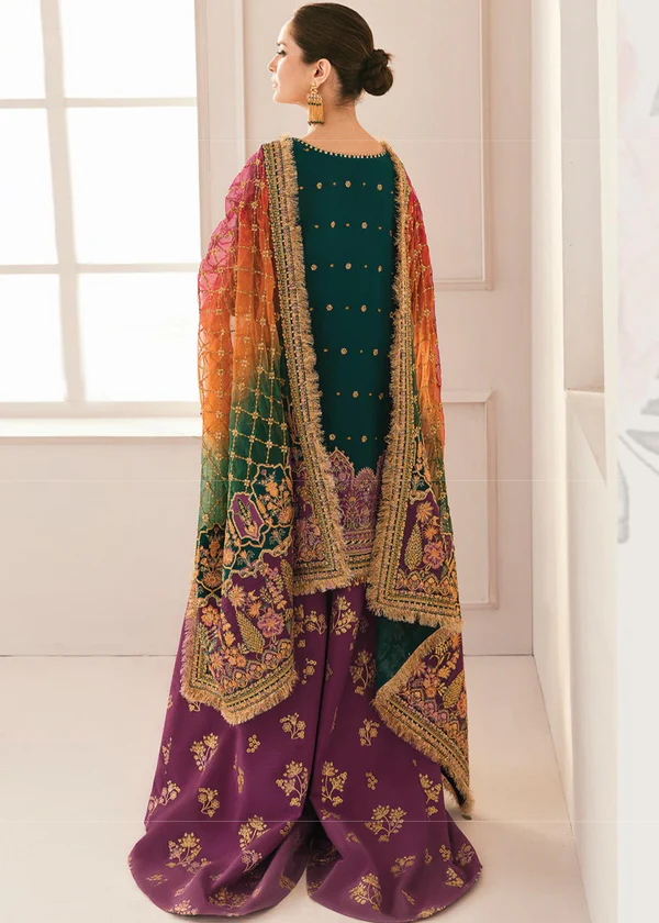 Luxury Embroidered Shirt & Dupatta | Dark Green (DZ#475)