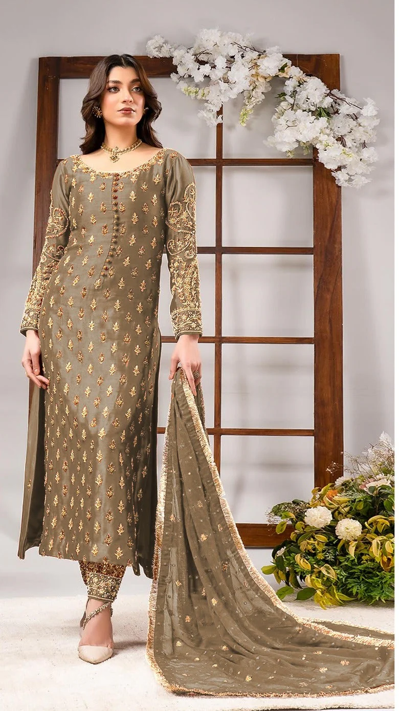 A graceful luxury embroidered shirt & dupatta set—perfect for formal wear, parties, and festive events ✨