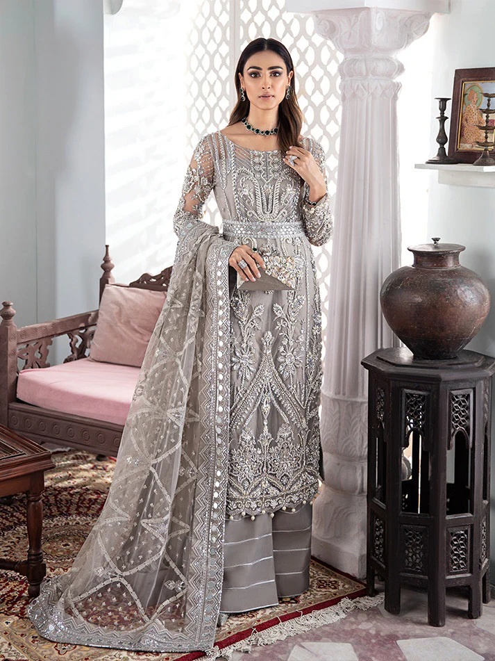 Bring a graceful, high-end look to your wardrobe 💫 with this Luxury Net Heavy Embroidered Unstitched 3-Piece Suit. Designed for formal occasions 👑, this outfit features detailed embroidery and statement finishing ✨ that looks rich and elegant in every color option.